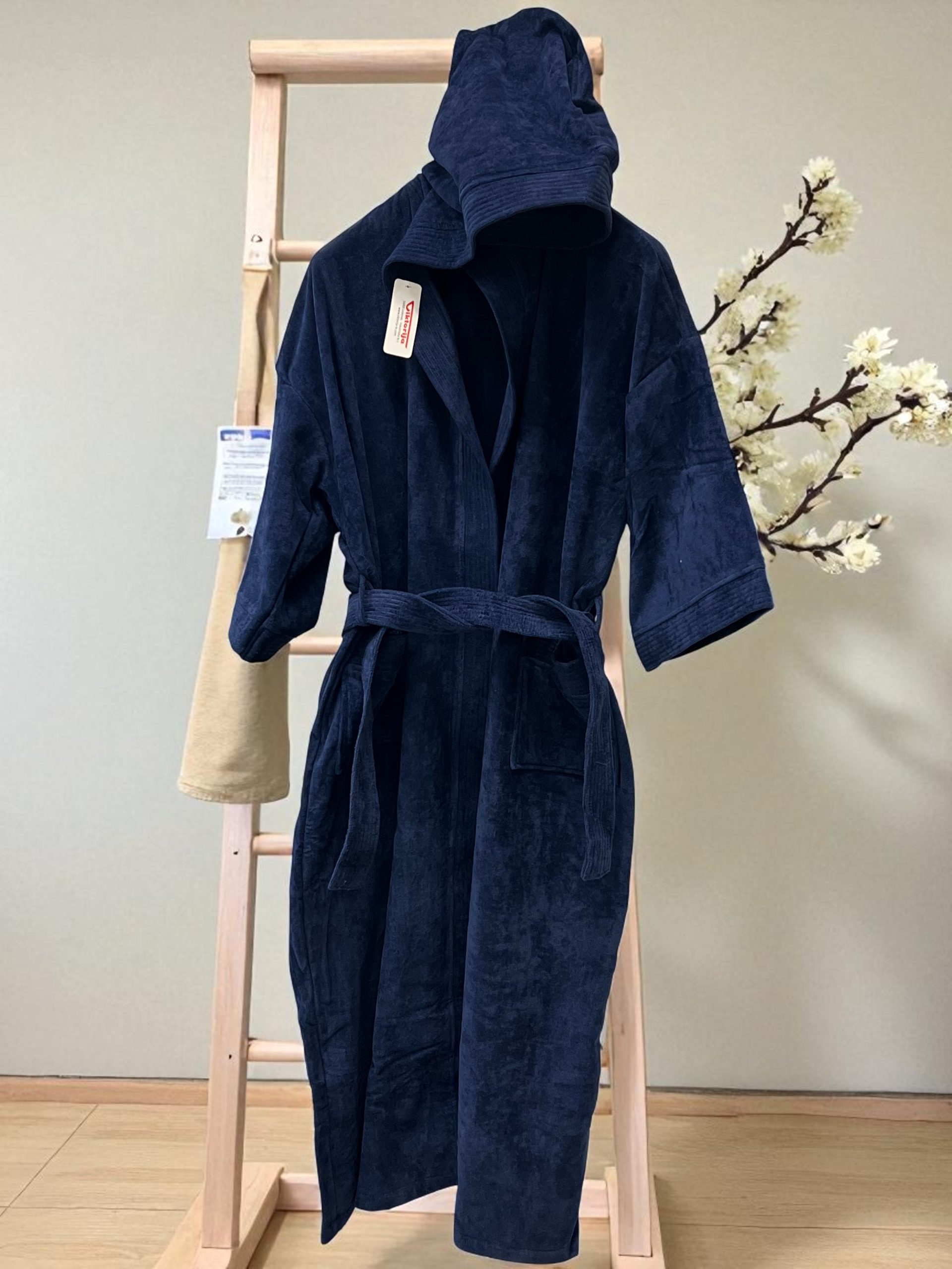 Bade mantil Pliš XXXL veličina Teget boja -Kapuljača Y-4