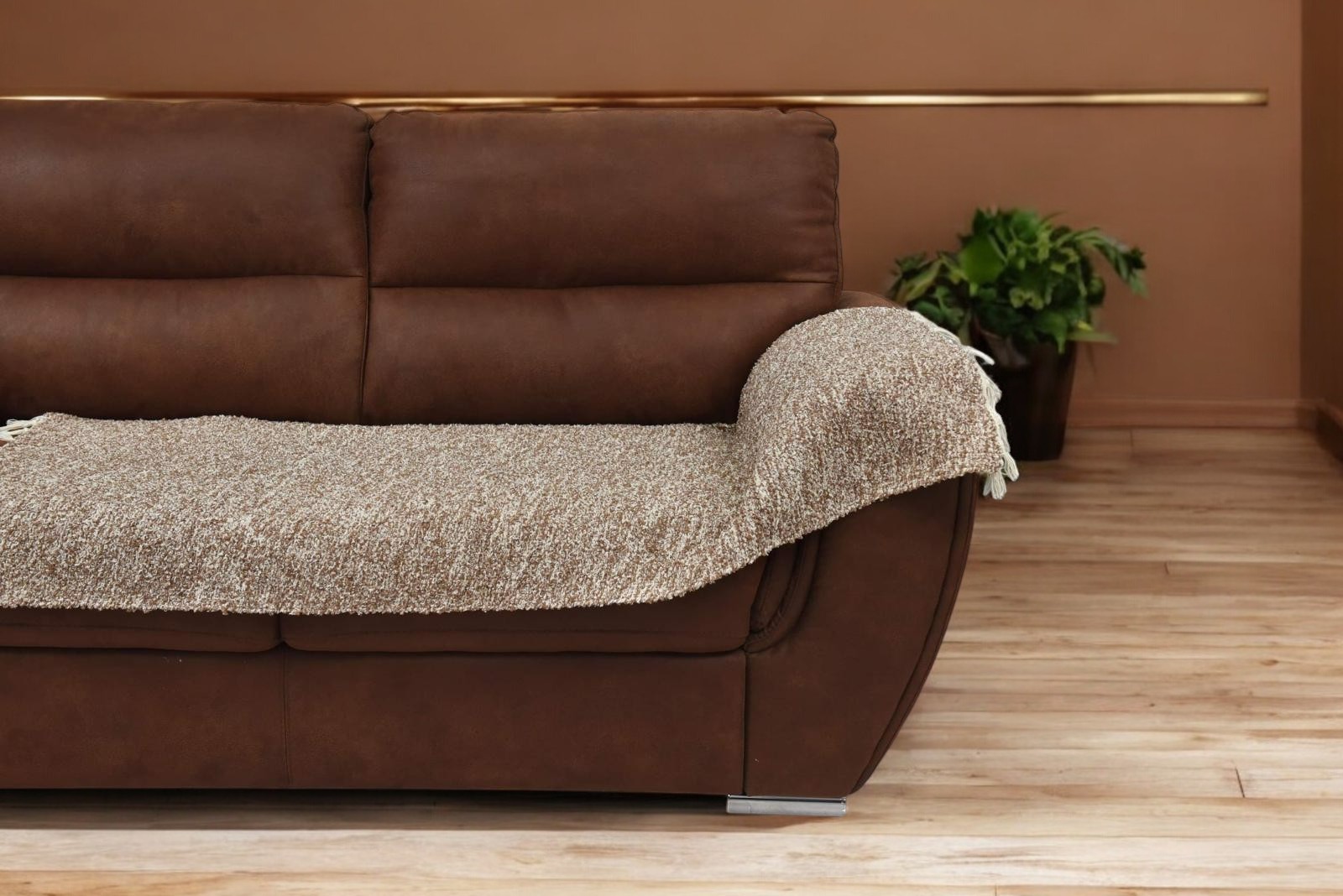 Fleker-prekrivač garnitura Trodelni Svetlo Braon boja (trosed-dvosed-fotelja) sačinjen je od čistih pamučnih vlakana.