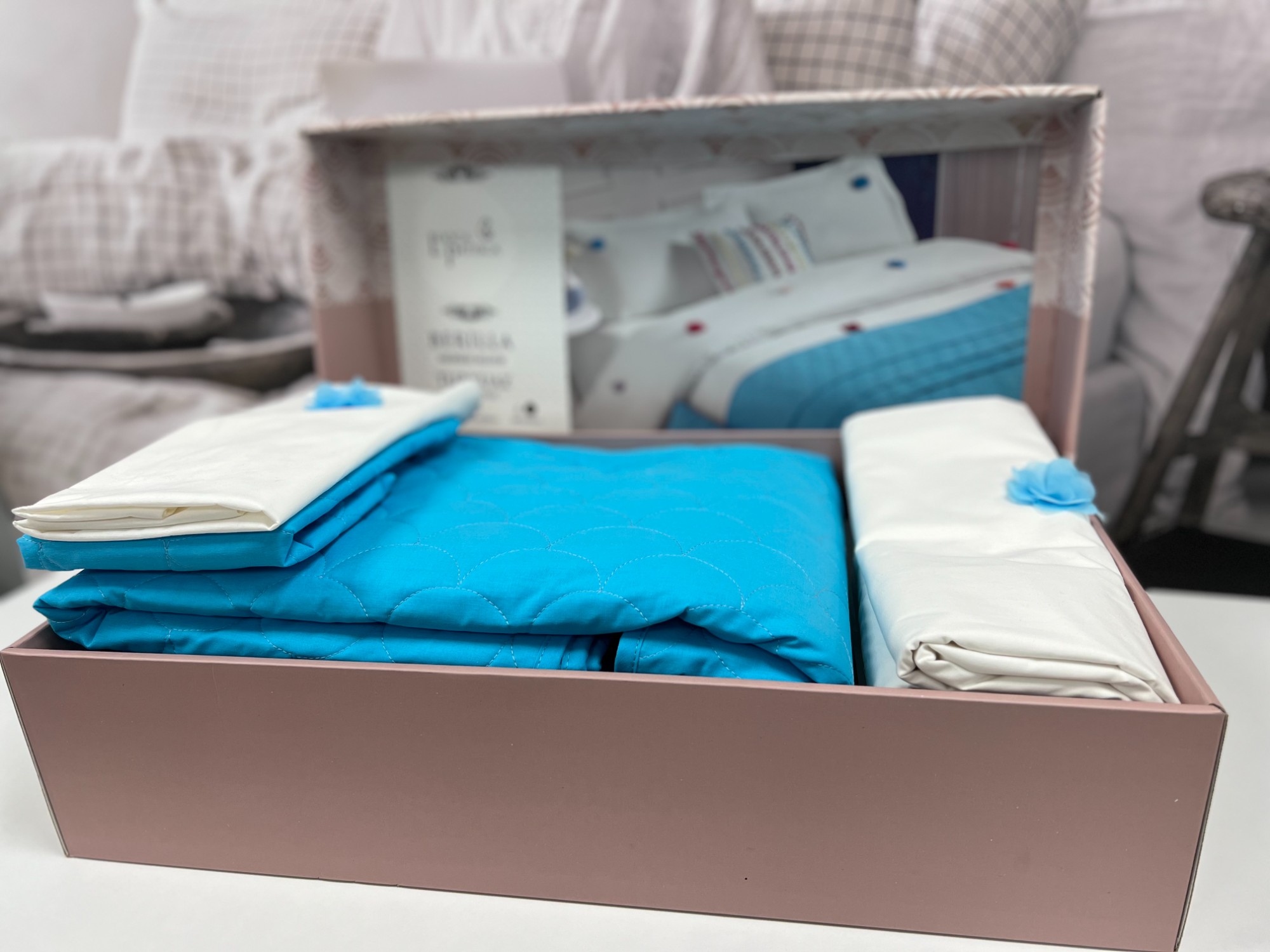 Komplet posteljina sa prekrivačem 180x230cm Louca Patisca set box je jedan od najpopularnijih i simboličnih poklona za venčanje,mladence i ostale lepe događaje.Na vama je samo da poželite da iznenadite osobu koju volite, a Louca Patisca set box je tu da vašu želju ostvari na najlepši način.