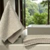 Peškir Novitesse čuvenog nemačkog tekstilnog proizvodjača ”Novitesse” dimenzije 30x50cm je izradjen od 100% organskog pamuka.