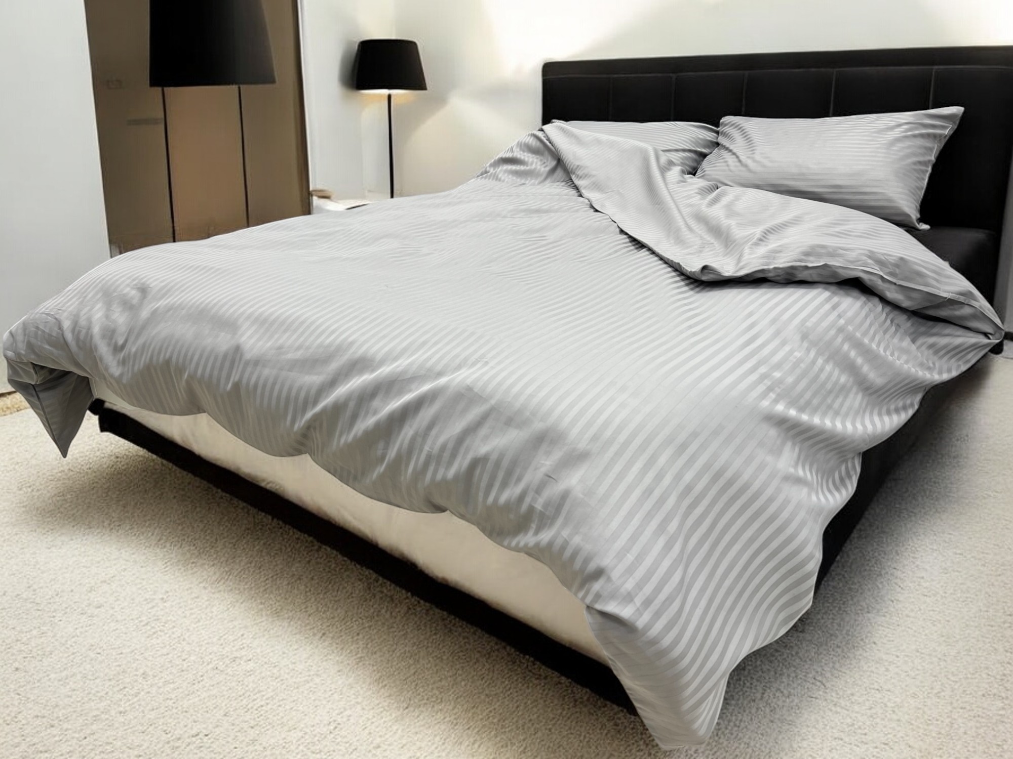 Posteljina Saten pruga Svetlo siva boja 200x220cm 100% pamuk