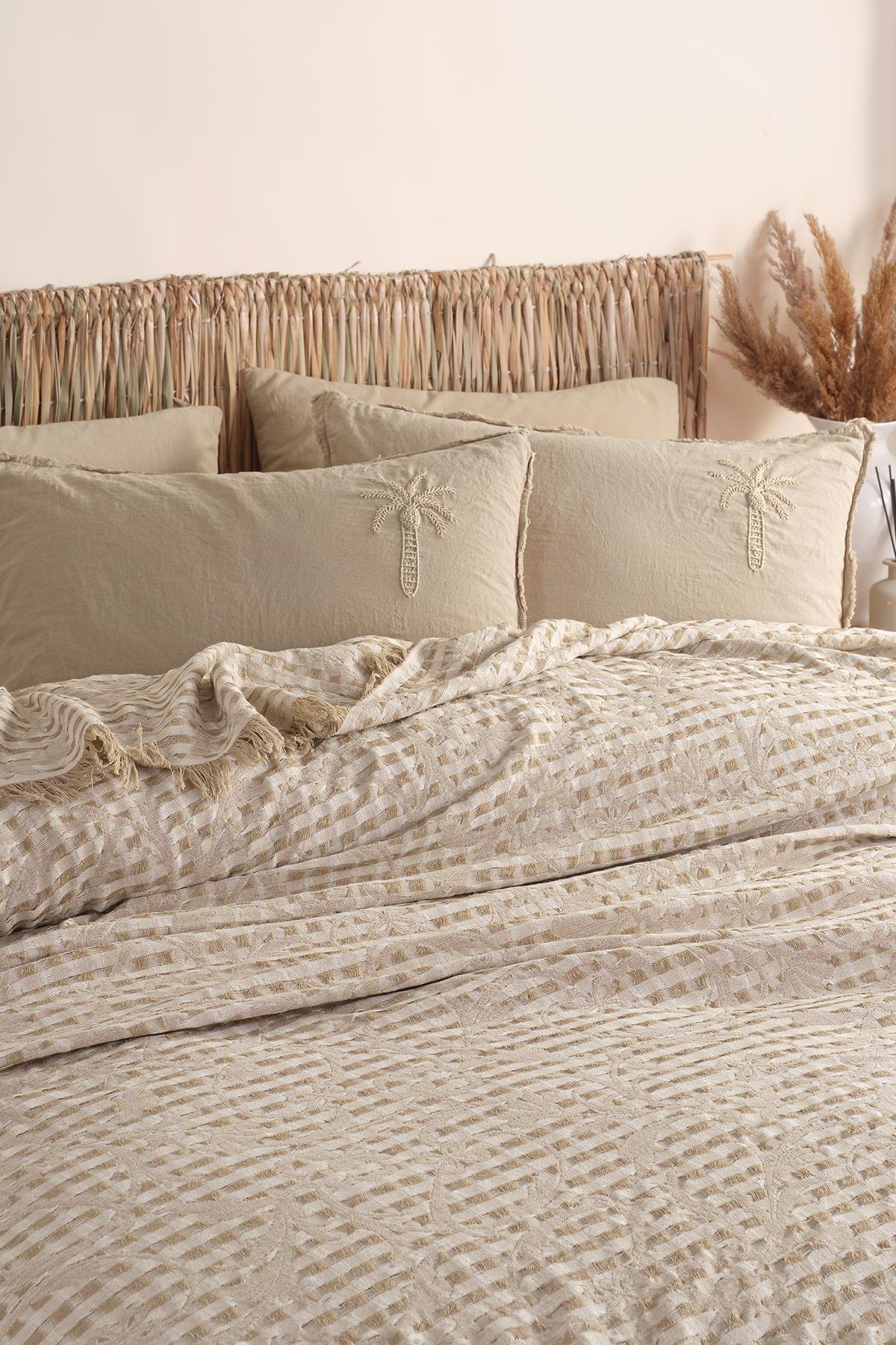 Prekrivač + Set posteljine Palma krem boja