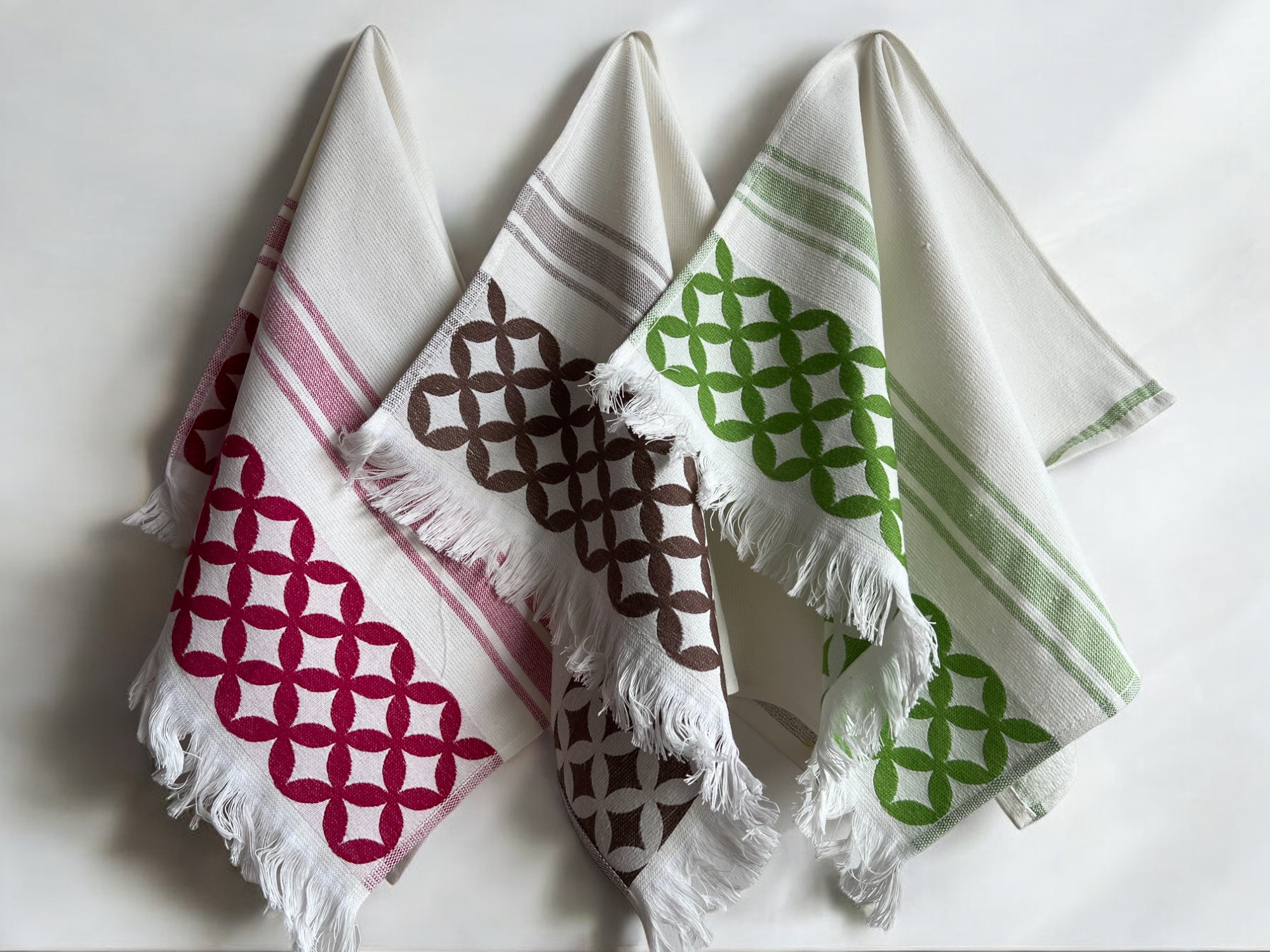 Set kuhinjskih krpa se sastoji od 6 kuhinjskih krpa dimenzije 40×60 cm,360 g/m2 po kvadratu,od 100% pamučnog materijala.
