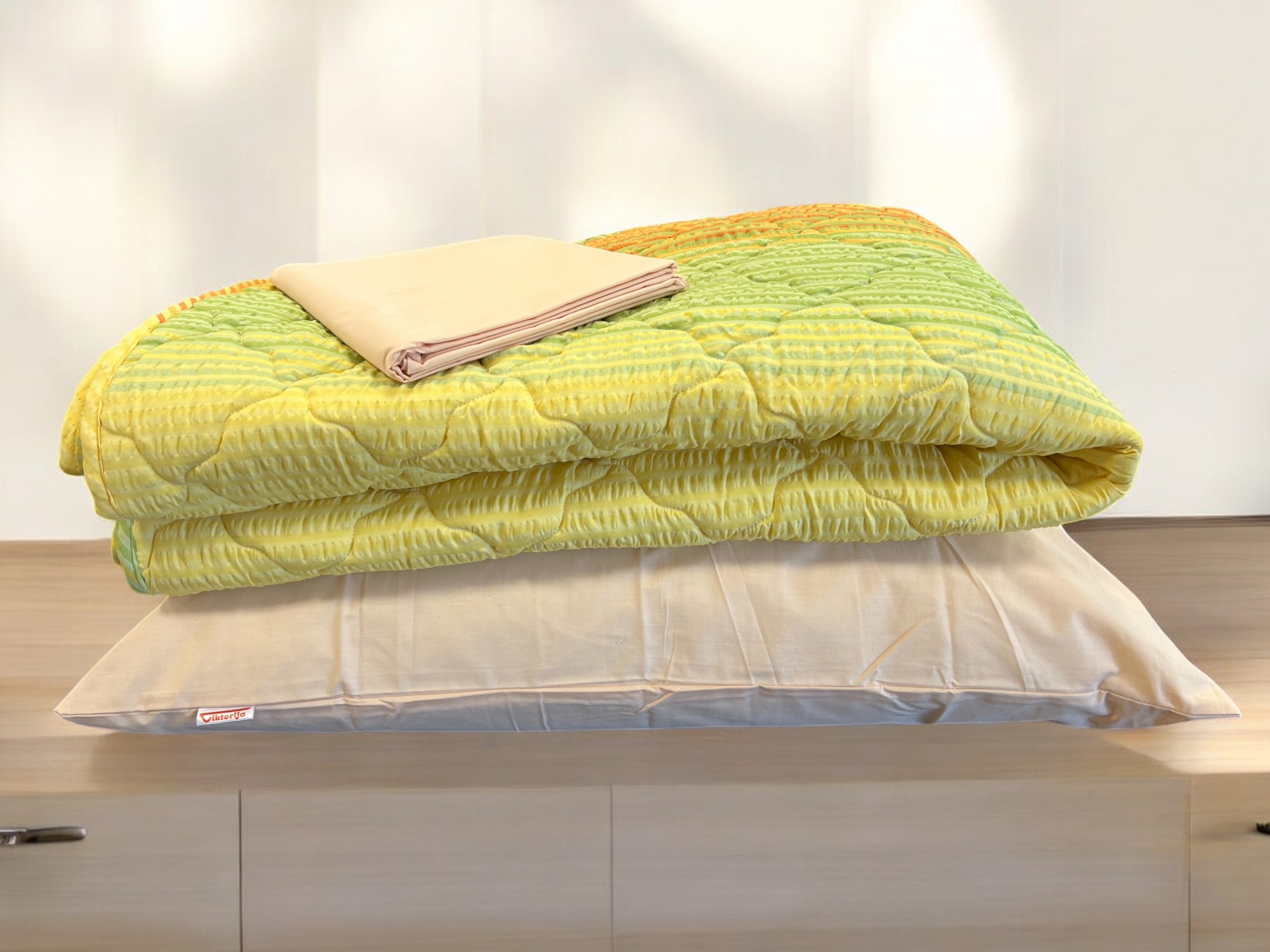 Set prekrivač,čaršav i jastučnica sačinjen je od laganog mikrofiber materijala,sa silikoskim punnjenjem u gramaži od 150g po m2.
